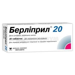 Берлиприл – це лікарський препарат, що належить до групи інгібіторів ангіотензинперетворюючого ферменту (АПФ). Основним активним компонентом є еналаприл, який активно впливає на систему ренін-ангіотензин-альдостерон і, таким чином, сприяє зниженню артеріального тиску.