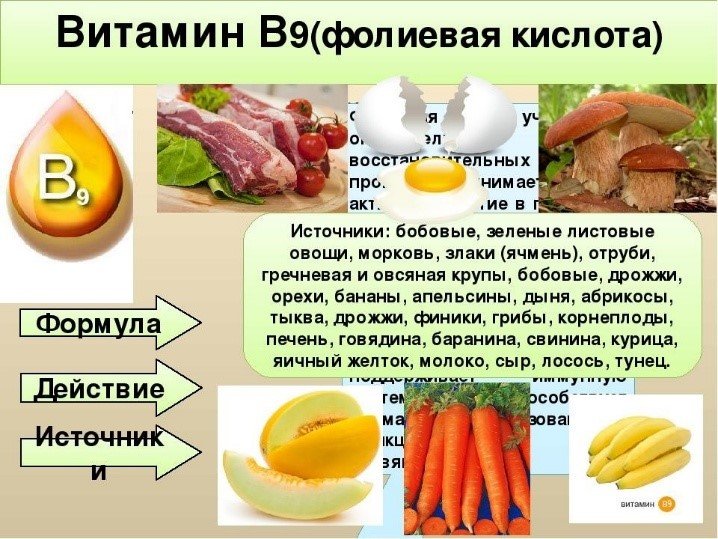 Важливо забезпечити надходження достатньої кількості фолієвої кислоти через дієту або добавки. Джерела вітаміну B9: