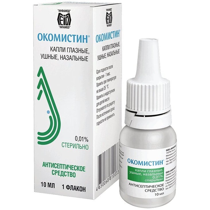 Окомістин | Антисептик для лікування кон’юнктивіту | Печіння, почервоніння |
