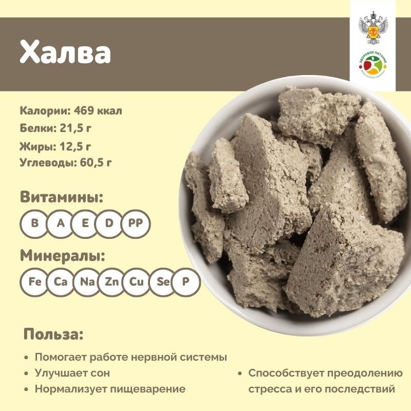 Вміст калорій в халві дозволяє отримати швидкий енергетичний поштовх, що може бути корисно вранці або перед фізичною діяльністю.