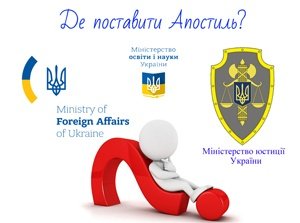 - Міністерство освіти і науки України — відповідає за апостиль на освітніх документах, таких як дипломи і атестати.