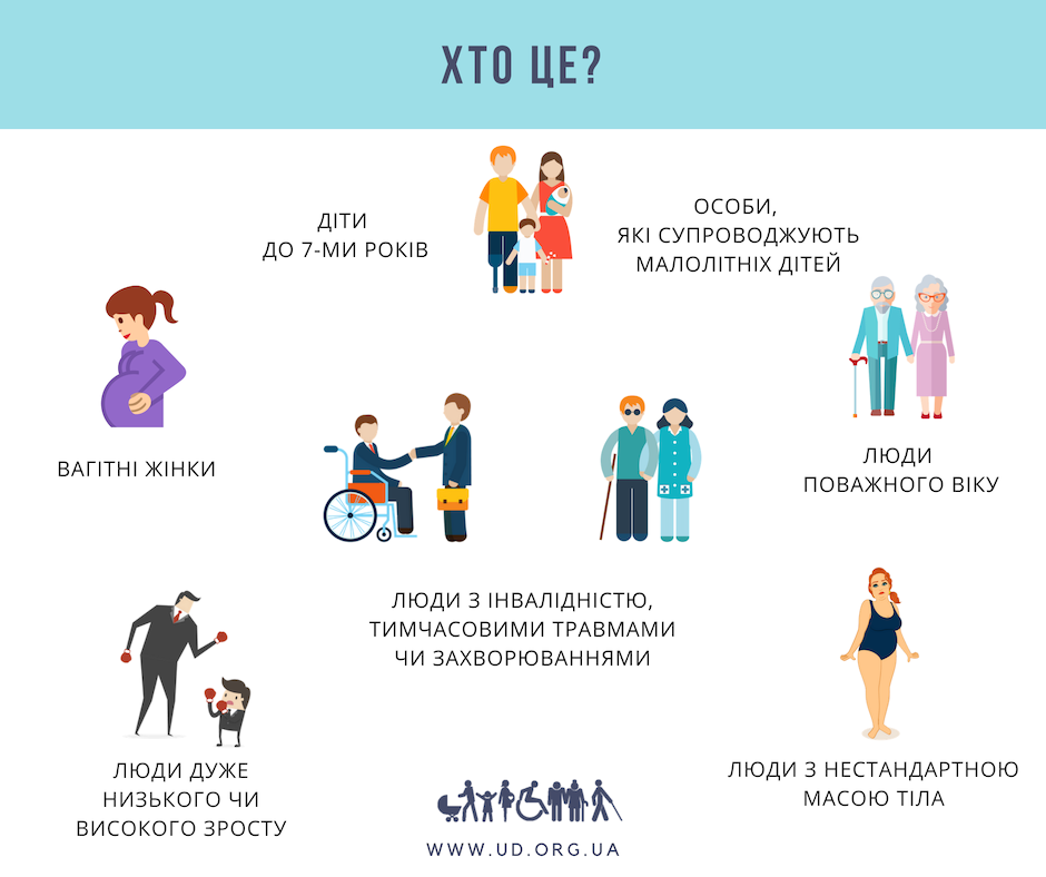 - людей з тимчасовими обмеженнями у русі (наприклад, після травм);