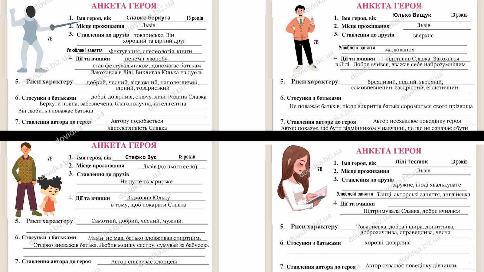 Хто з героїв любив малювати? Одним з таких героїв є Славко Беркута. У романах Ніни Бічуї, Славко демонструє великий талант до малювання, що стає для нього способом відпочинку і концентрування думок. Через малювання він проявляє свою унікальність і знаходить спокій.