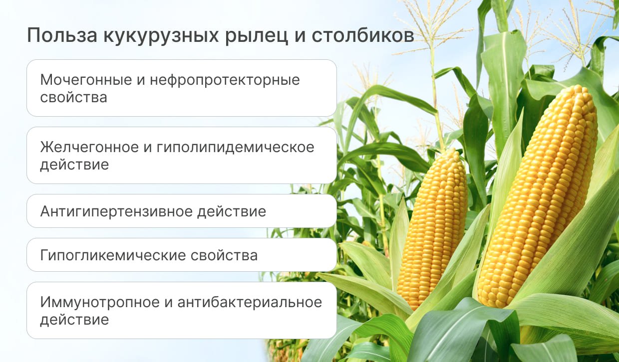 Кукурузные рыльца відомі своїм багатством на біологічно активні речовини, що забезпечують організм різноманітними елементами. Використання кукурузных рыльц у вигляді чаю, настоянок та відварів може проявити такі корисні якості: