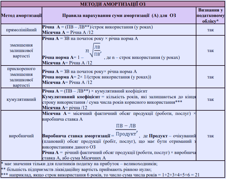 - Класифікація методів амортизації