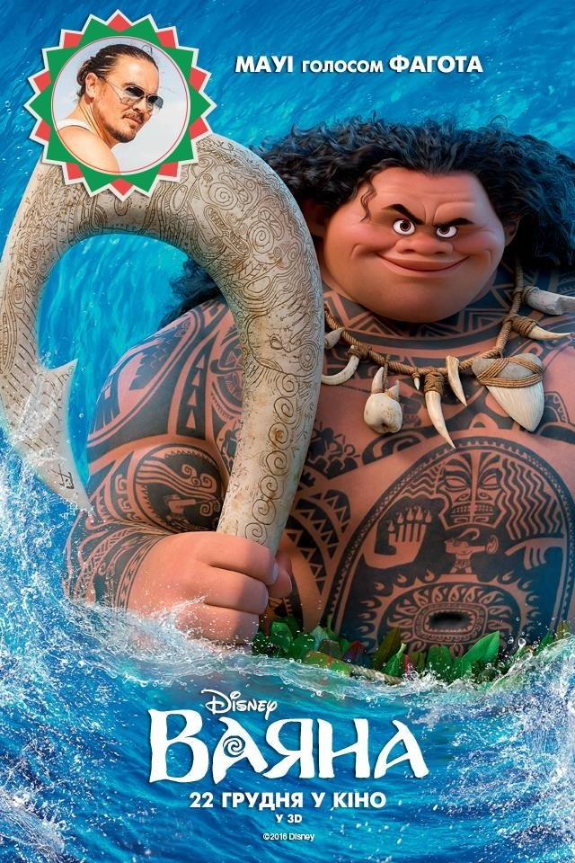 - Мауї – Євген Малуха. Євген вклав в образ Мауї не лише голос, а й неповторний шарм та харизму.