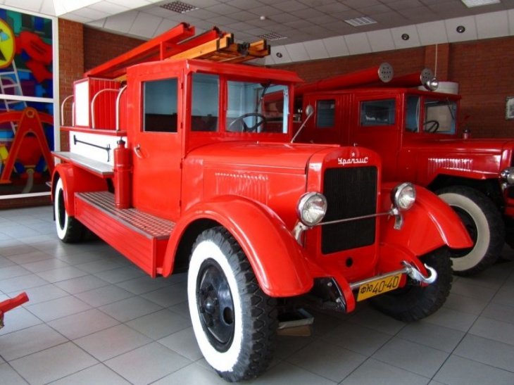 - Старовинні пожежні машини, що наче вертаються крізь час.