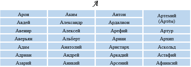 Існує безліч імен, які починаються на “А”. Ось список деяких найпопулярніших: