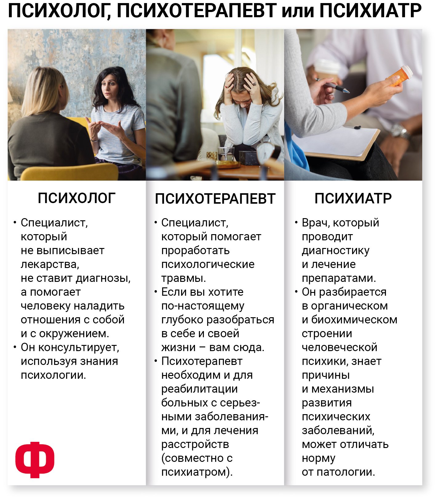 - **Тривожні розлади:** Для людини, що переживає тривожні розлади, легкі або помірні емоційні проблеми, більш доречним буде звернення до психотерапевта.