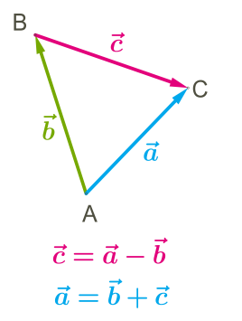 - Правило трикутника: Якщо два вектори, a і b, з’єднані таким чином, що кінець одного співпадає з початком іншого, то їх різниця визначається як вектор із початку першого до кінця другого вектора.