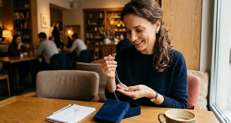 Длина нашейного украшения способна визуально корректировать черты лица и пропорции фигуры. Короткие модели длиной 40 сантиметров акцентируют внимание на шее, в то время как изделия длиной 50–55 сантиметров создают вертикальную линию, которая визуально вытягивает силуэт. При выборе подарка стоит ориентироваться на средние параметры, если точный размер неизвестен. Также рекомендуется учитывать комплекцию женщины, чтобы украшение не выглядело слишком мелким или чрезмерно массивным.