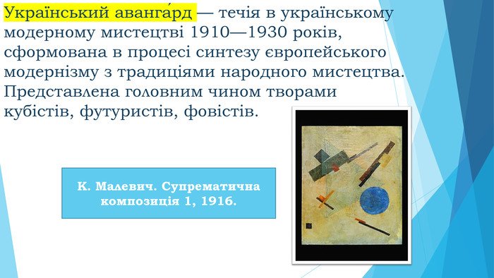 Український авангард має свої особливі риси та багату історію. Він розвивався у особливих умовах національної ідентичності та соціальних змін у 1910-1940-х роках.