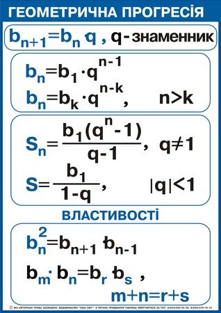 Формули та приклади розв’язків задач з геометричної прогресії