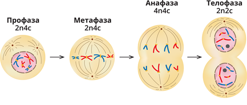 Мітоз складається з кількох послідовних етапів: