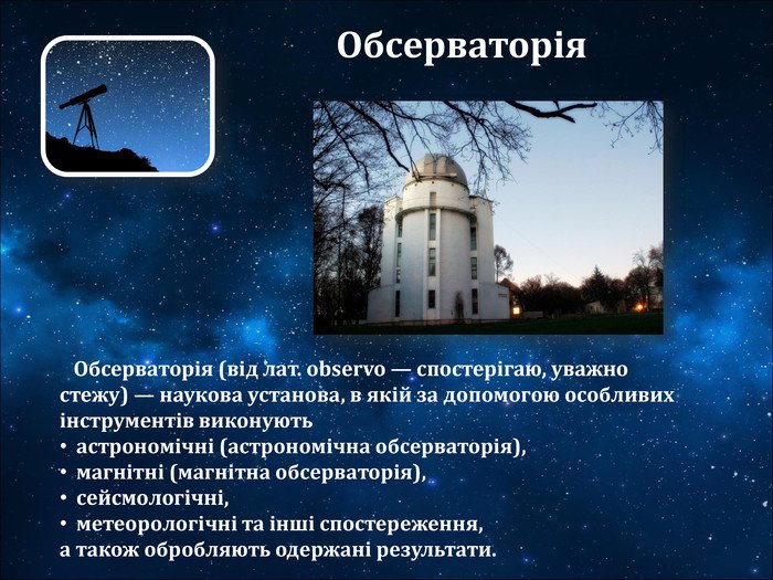 - Обсерваторії в Україні