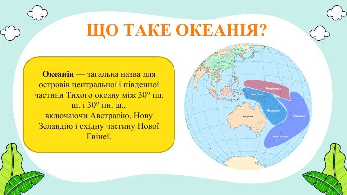 Океанія — це надзвичайно різноманітний і значний регіон, як з географічної точки зору, так і з культурної. Що таке Океанія? Це поєднання унікальної природи, багатої культури і сучасних викликів, які вимагають від усіх нас спільних зусиль у їх розв’язанні.