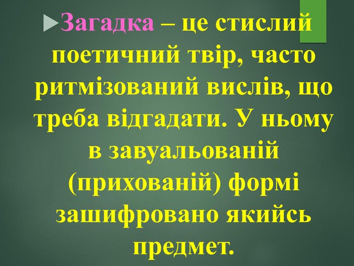 - Освітня функція: Загадки сприяють розвитку мислення, підходу до нестандартних ситуацій та творчого підходу до розв’язання проблем.