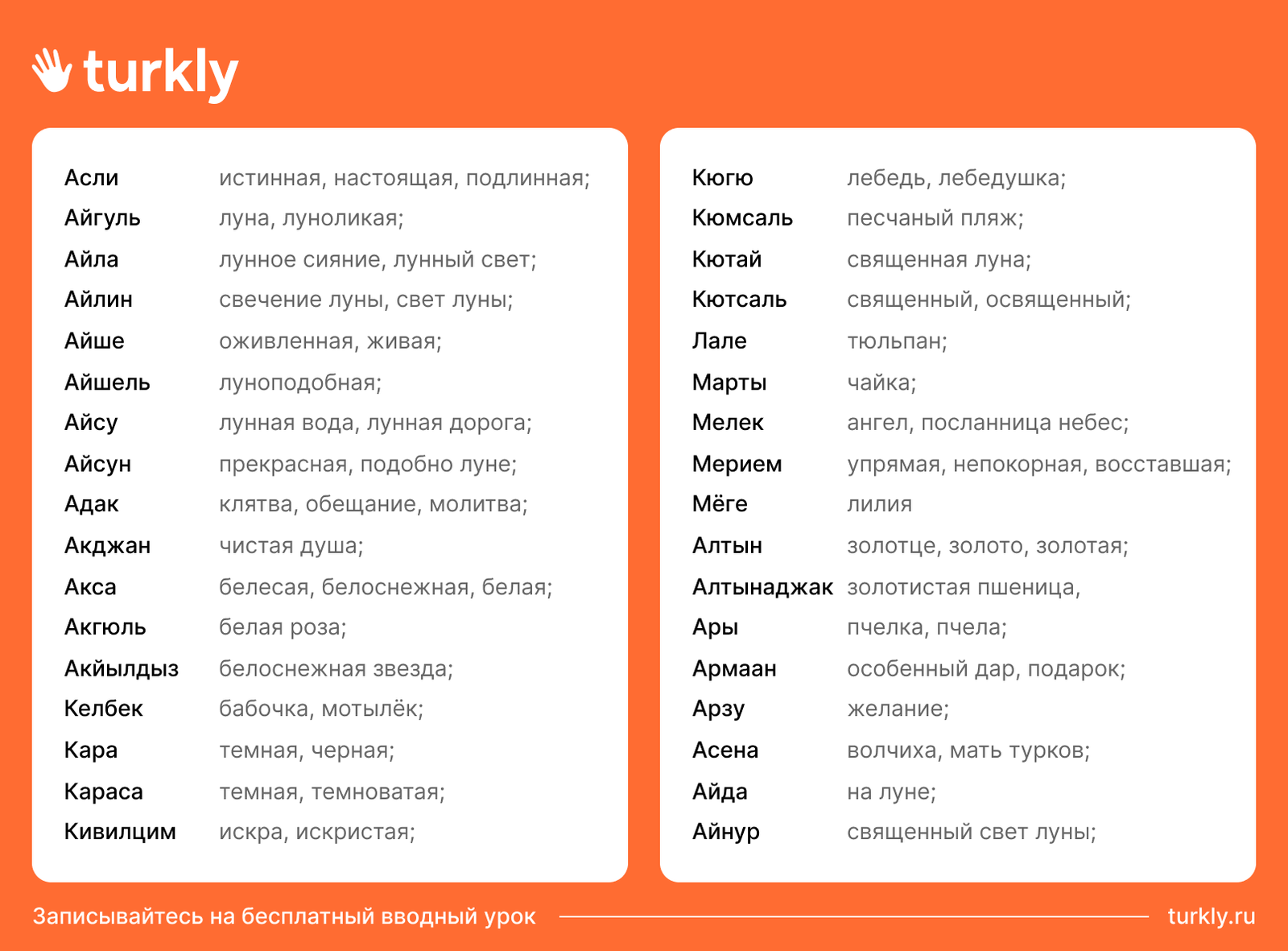 - Сучасні імена – придумуються на основі турецької мови і зазвичай пов’язані з природою, такими як квіти або пейзажі.