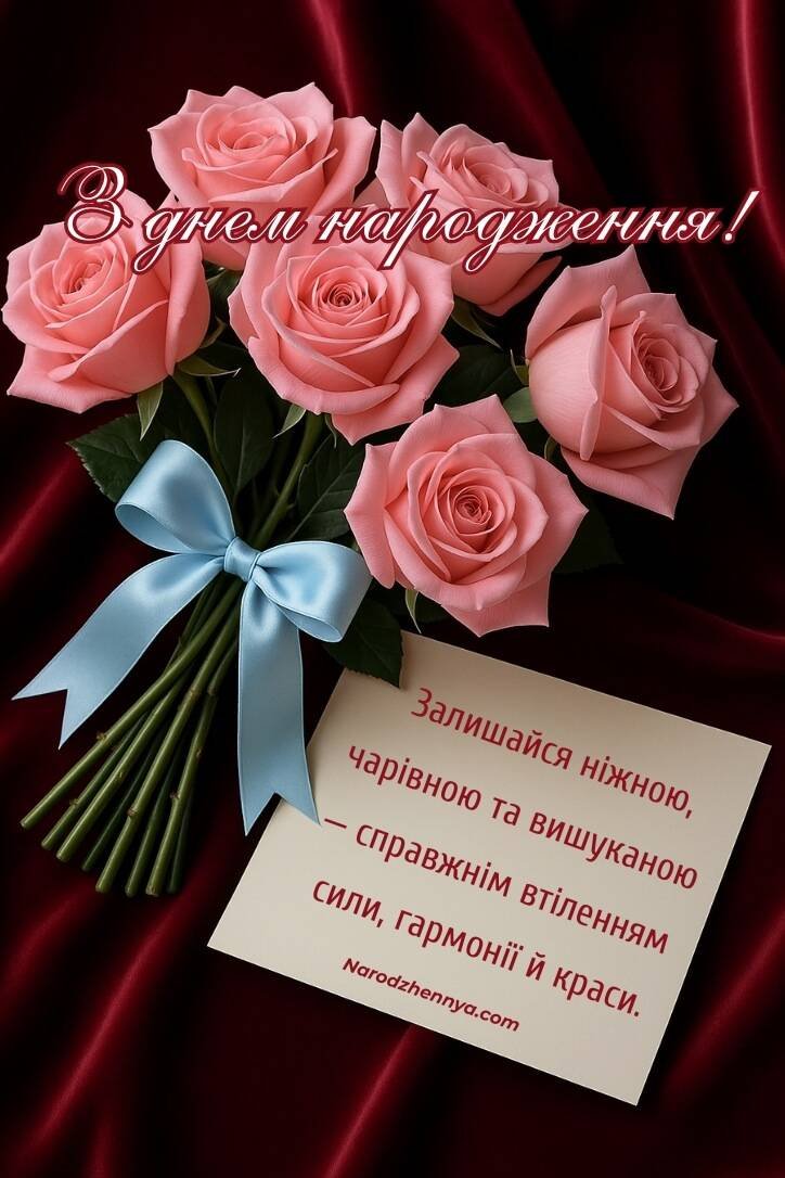 Дорогенька! Твій День Народження — це той час, коли вся Земля трішечки радіє разом із тобою. Нехай кожен промінчик сонця свідчить про твою красу, а кожна зірка на небі — про твою безмежну душу. І нехай всі твої мрії, навіть найсміливіші, обов’язково збуваються!