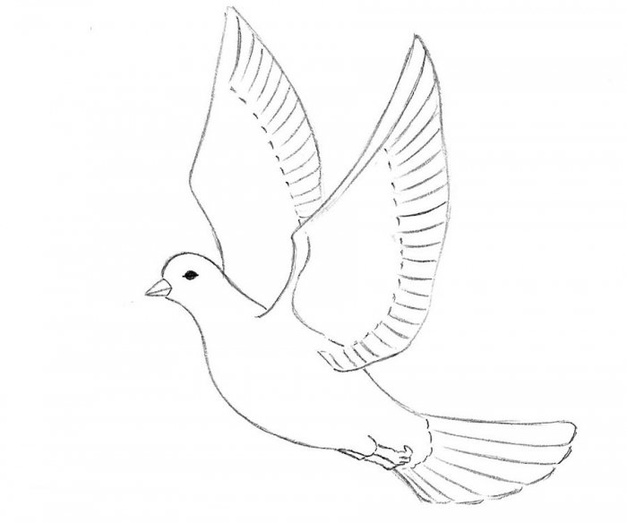 - Хвіст: Внизу тулуба намалюйте кілька довгих, паралельних ліній, які розширюються донизу. Це буде хвіст голуба.