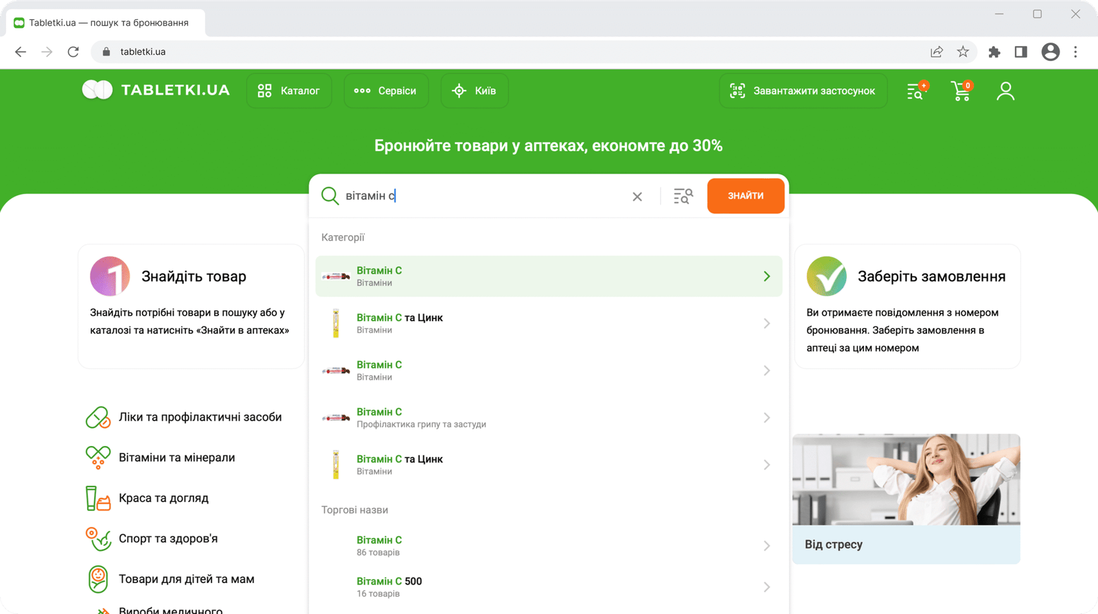 - Перейдіть на головну сторінку сайту Tabletki.ua.