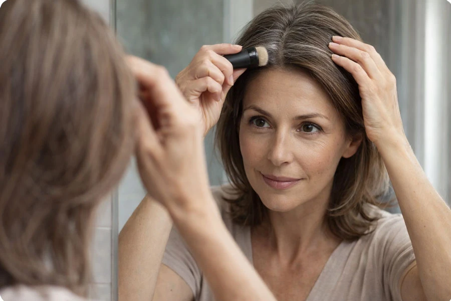 У багатьох випадках мова йде не про повну сивину, а лише про локальну зону, яка стає помітною при денному світлі або під час фото. Саме в таких ситуаціях актуальними стають засоби тимчасового перекриття.