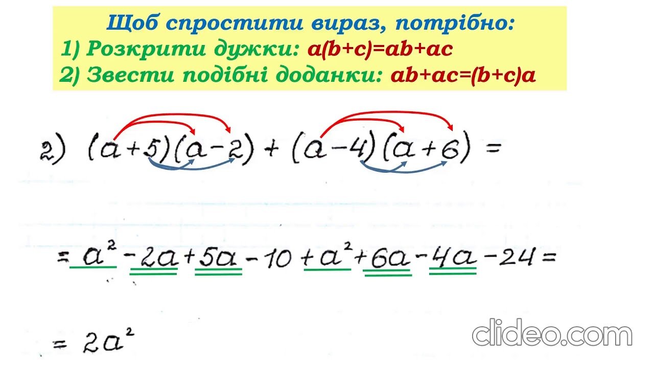 Спрощення виразу – це процес зменшення складності математичного виразу без зміни його значення. Це може включати: