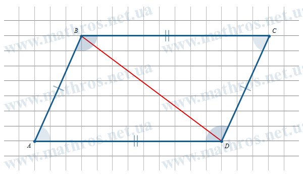 Розглянемо паралелограм з вершинами: A(1, 2), B(4, 2), C(5, 5), D(2, 5). Потрібно знайти довжини діагоналей.