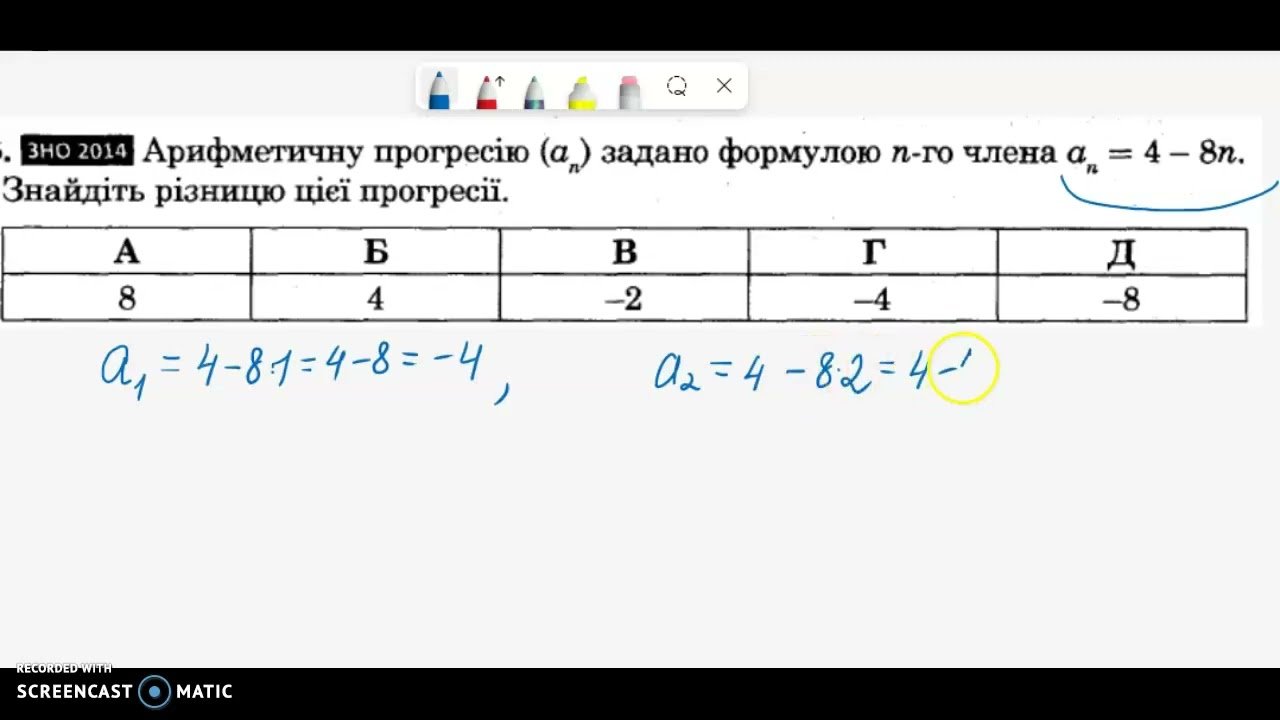 - Застосувати формулу: d = a2 – a1 = 8 – 10 = -2.