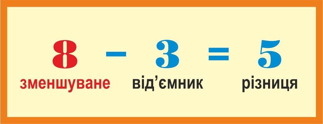 - Від’ємник — це число, яке ми віднімаємо, розташовується на другій позиції.