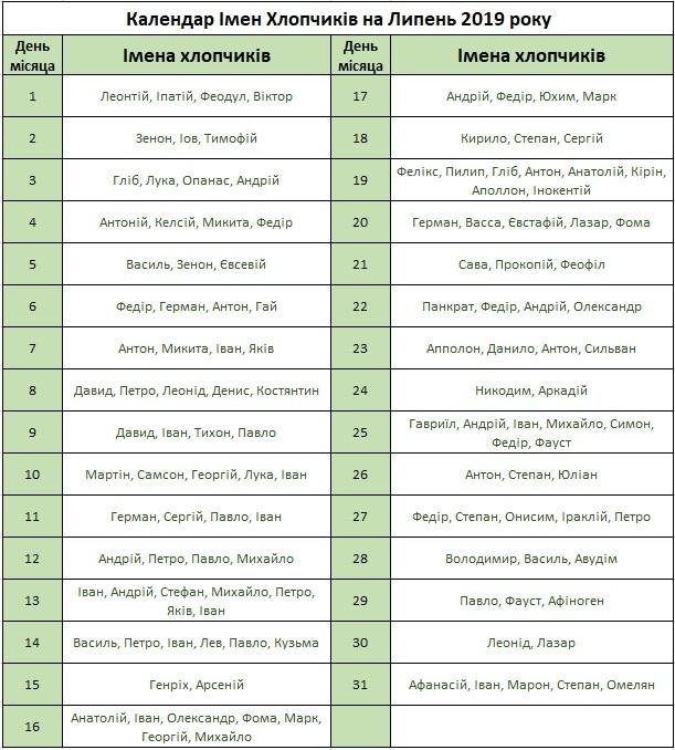 | 7 липня | Іван | Святий Іоанн Хреститель |