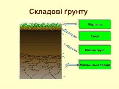 - Біологічний вплив. Різні мікроорганізми, корені рослин та інші живі організми активно переробляють органічні речовини, впливаючи на структуру ґрунту.
