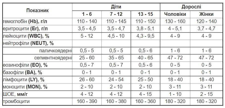 | Показник | Норма для дітей |